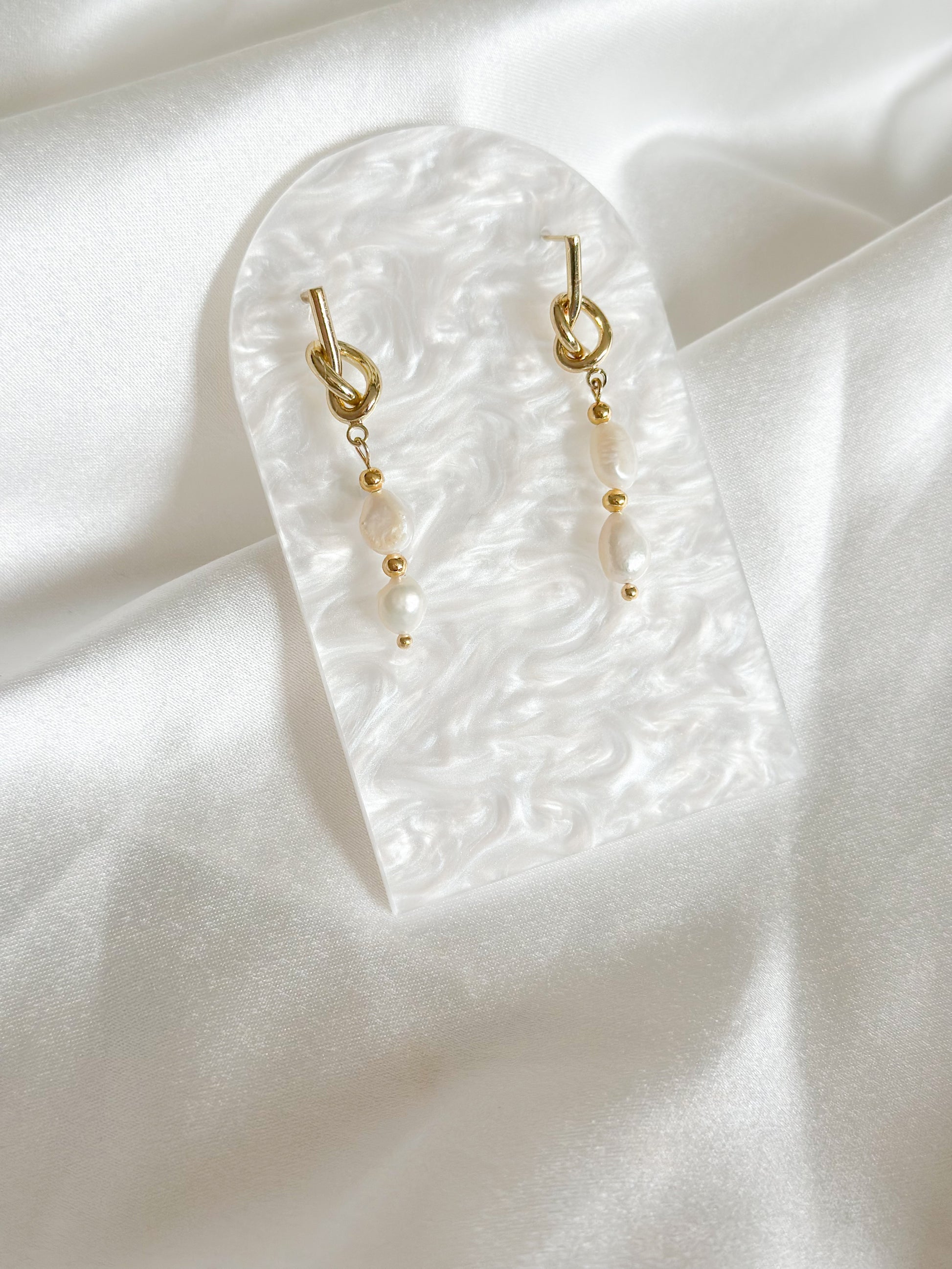 Tie the knot in our stunning gold knot pearl drop earrings.
